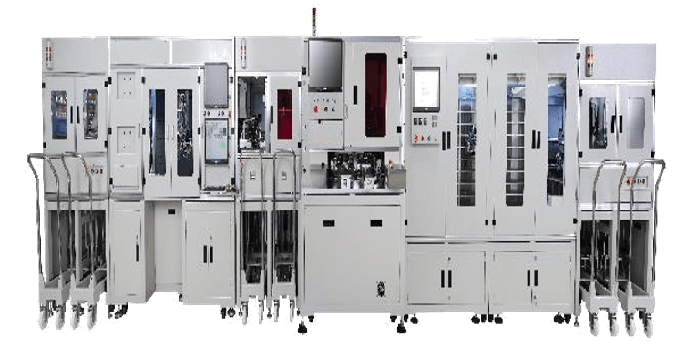由机械手精准搬运到各工位进行相应点胶、贴屏与保压;